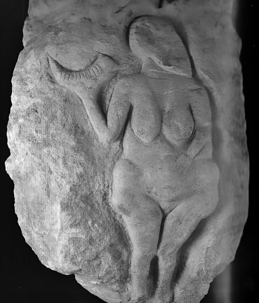 One of the joys of reading this book is the obvious pleasure that Goettner-Abendroth takes in bringing all her expertise together in this career-capping project. She is that rare type of thinker who is not only daring, original, and liberatory in her ideas but equally rigorous, careful, and tireless in the research that backs them up. (The book’s bibliography is twenty-two pages long.) Aware of the revolutionary potential of this work, she has set out to make a bulletproof argument. Indeed the first half of MSPRP is jam-packed with detailed, wide-ranging, mind-blowing evidence of the matriarchal roots of our species from around the world, all thoroughly illustrated with maps, diagrams, drawings, and photos of art and architecture: Maltese temples in the shapes of mother-daughter goddesses; priestesses dancing in a sacred grove in Knossos; five large vulvas, each colored red, in a Spanish cave; a goddess on a lion throne; a rock painting of women cultivating the fields from the fifth century BCE; mounted Amazons with weapons; figurines of an ancestral motherline from Mesopotamia; mountains named after a goddess’s breasts; the goddess Lilith as giver of death; etc.