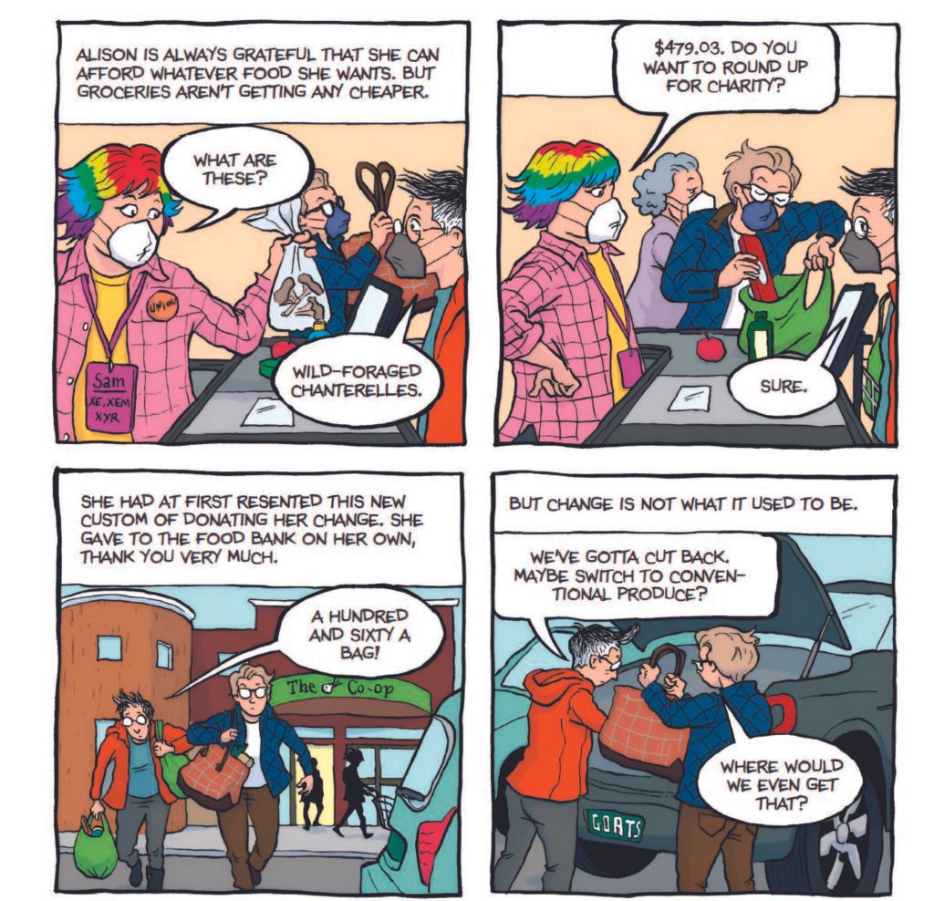 Panels from Spent by Alison Bechdel. Courtesy of Mariner Books, an imprint of HarperCollins Publishers. Copyright © 2025 by Alison Bechdel. Reprinted with permission